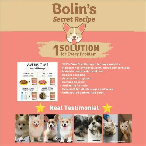 Bolin's | Probiotic/ Fish Collagen/ Goat Milk/ Fish Oil Powder/ UTI/ Supplement for Dog Cat Rabbits