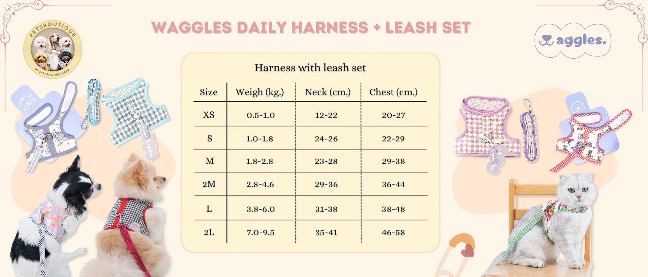 Cute Prints - Waggles Dog Cat Rabbit Harness & Leash Set | Petsboutique